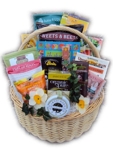 Show the special woman in your life that you care with our Deluxe Women's Health Basket. She'll enjoy the delicious treats while learning how to eat the foods to maintain her good health. There are several different "power-foods" containing vitamins, minerals, and phytochemicals that are important to achieving optimum female health and for addressing common health concerns that women face. With the backing of current research, we are recommending the following:The Deluxe Women's Health Basket Includes: Broccoli Soup Plantain Chips Dark Chocolate Bar (Endangered Species or Chocolove) Nutorious Dried Peaches Orange Cranes Dried Cranberries Dr. Lankin's Awesome Almonds® Kale Chips Terra Chips Artichoke Lemon Pesto Spinach Pasta Dried Mangoes Panda Licorice Chocolate Covered Sunflower Seeds Green Tea Phytopia Cookbook Recommended Food Guide for Women's Health Handmade BasketYou will not be disappointed with